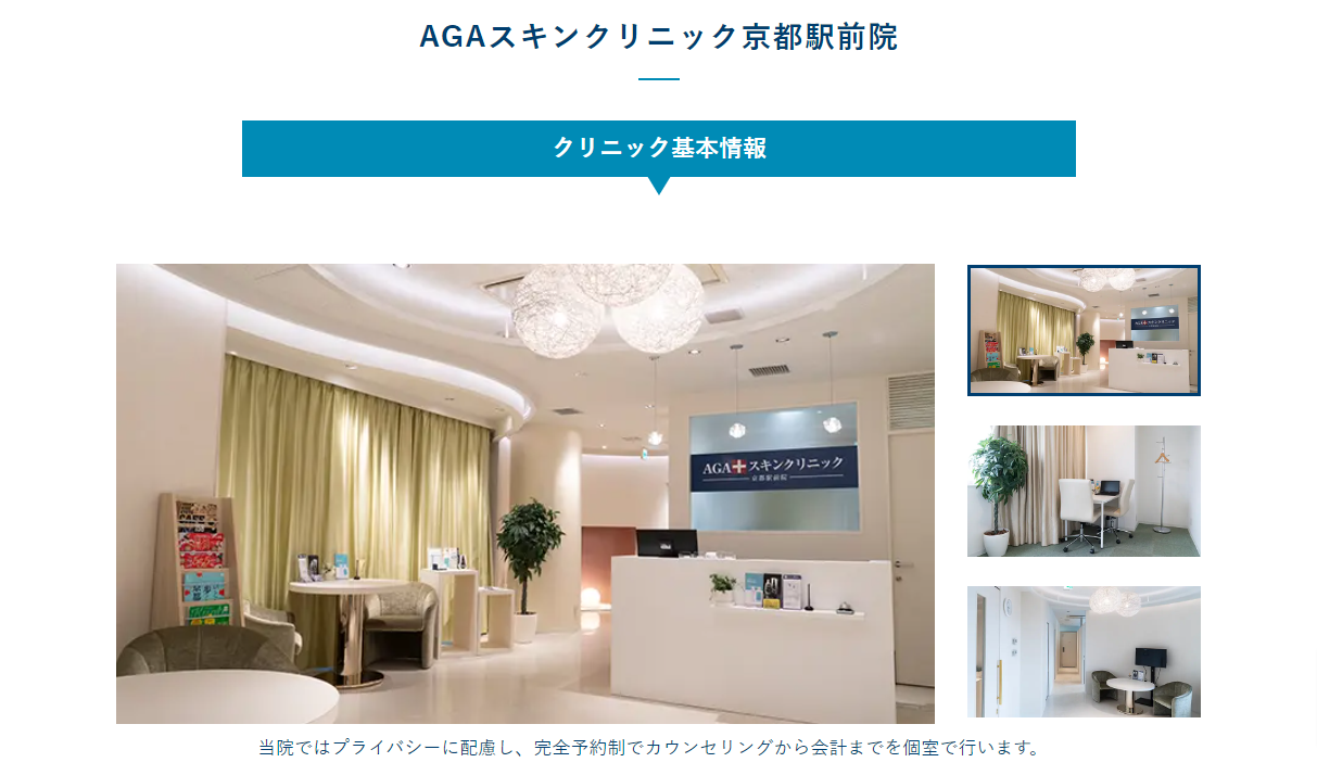 | AGAスキンクリニック京都駅前院 | 湘南クリニック京都駅ビル院院 | イースト駅前クリニック京都院 | |