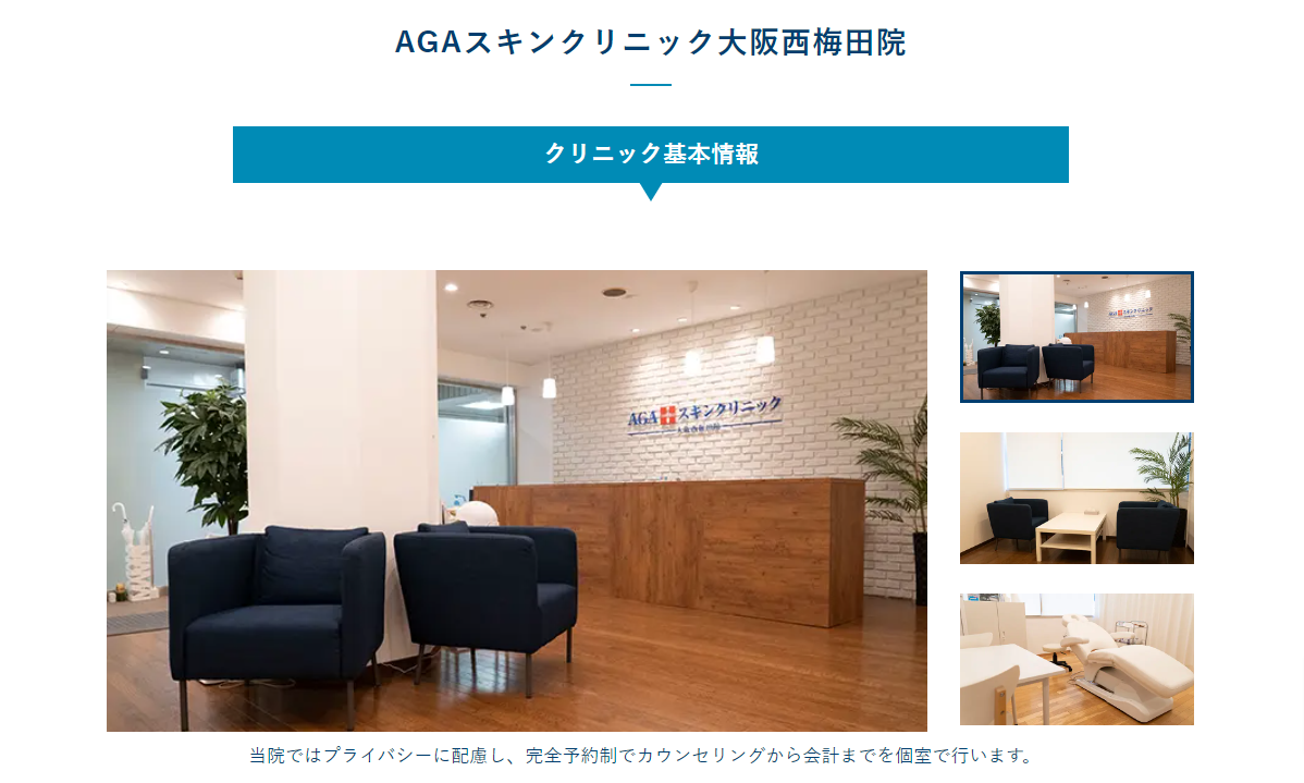 | AGAスキンクリニック大阪西梅田院 | 湘南AGAクリニック大阪院 | イースト駅前クリニック大阪院 | |